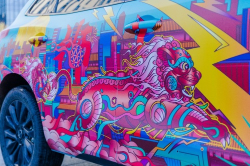 將傳統(tǒng)文化變?yōu)閲保简?yàn)著設(shè)計(jì)師的功力。“國潮設(shè)計(jì)師不能對老祖宗留下的文化遺產(chǎn)進(jìn)行‘貼圖式設(shè)計(jì)’,而要將傳統(tǒng)與時代結(jié)合起來進(jìn)行創(chuàng)新,否則就是一潭死水。”他說。當(dāng)風(fēng)行T5 EVO映入眼簾,吳堯的腦海中靈光乍現(xiàn)。“就像找到知音的那種感覺”,他談道,“與其說是我選擇風(fēng)行T5 EVO作為創(chuàng)作藍(lán)本,不如說是它的潮酷給了我靈感。風(fēng)行T5 EVO跟我印象中的汽車不一樣,它活力四射的車身線條、不拘泥于傳統(tǒng)的配色,都透著‘潮酷’的感覺,同時又有向前沖的力量感,我能感受到這個品牌徹底變革和一往無前的精神,而這種創(chuàng)新、變革,和我一直堅(jiān)持的設(shè)計(jì)理念是一致的。“