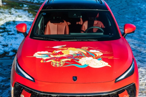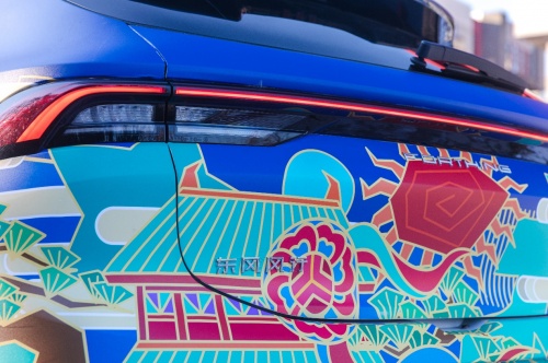 與行李箱比,尺寸更大、速度更快、足跡更遠(yuǎn)的汽車,是更高階的媒介。“為故宮、敦煌、黃鶴樓等經(jīng)典IP設(shè)計(jì)插畫的經(jīng)歷讓我堅(jiān)信,好的國潮作品,必須深入挖掘文化的精神內(nèi)核,找到國潮與媒介的共同點(diǎn),進(jìn)行‘不違和’的再創(chuàng)作。”吳堯介紹說,在設(shè)計(jì)風(fēng)行T5 EVO國風(fēng)版時,他特別注重速度感、力量感和潮酷風(fēng)格的打造,“既要符合汽車高速移動的特質(zhì),也要符合風(fēng)行獨(dú)特的氣質(zhì)。”