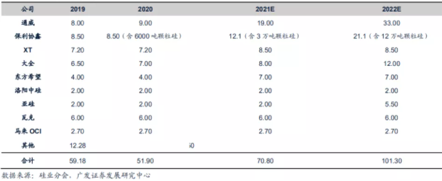 據悉,通威產能有望在2021年底達到18萬噸,未來1年里,140億元投資的樂山20萬噸高純晶硅項目逐步投產,通威產能預計在2022年底達到33萬噸。