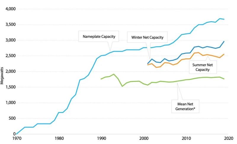 目前美國共有93個地熱發電站,總裝機容量為3673MW。近年來,美國地熱發電裝機量增長緩慢,根據統計,從2015年至2019年期間,美國新增了7個地熱發電站,總裝機容量186MW,但同期11個地熱電站退役,總裝機容量103MW。