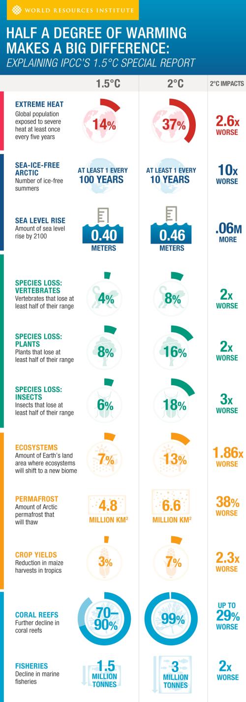 1.5℃的增加將對氣候產生重大影響。據政府間氣候變化專門委員會(IPCC)說,如果讓這種上升達到2℃,其影響將會大得多[3]。