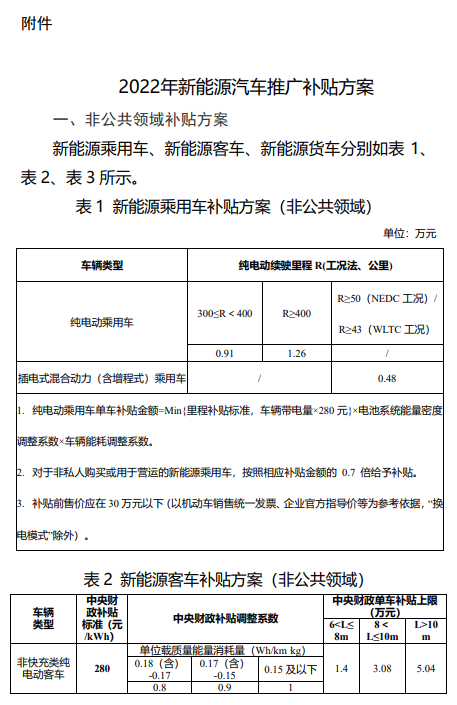 附件:2022年新能源汽車推廣補(bǔ)貼方案