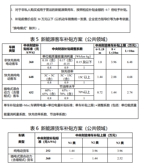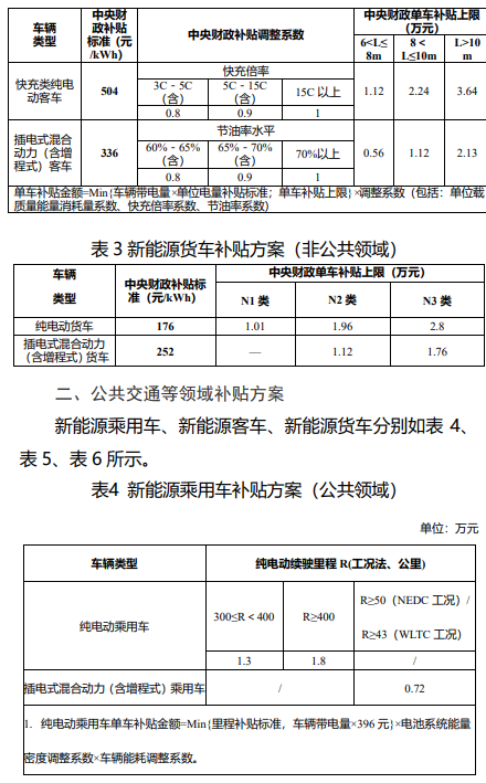 按照財(cái)建〔2020〕86號文件規(guī)定,2022年新能源汽車購置補(bǔ)貼標(biāo)準(zhǔn)在2021年基礎(chǔ)上退坡30%;城市公交、道路客運(yùn)、出租(含網(wǎng)約車)、環(huán)衛(wèi)、城市物流配送、郵政快遞、民航機(jī)場以及黨政機(jī)關(guān)公務(wù)領(lǐng)域符合要求的新能源汽車,2022年補(bǔ)貼標(biāo)準(zhǔn)在2021年基礎(chǔ)上退坡20%。按此,《通知》明確了不同類型、不同領(lǐng)域車輛產(chǎn)品的補(bǔ)貼標(biāo)準(zhǔn),且自2022年1月1日起執(zhí)行。