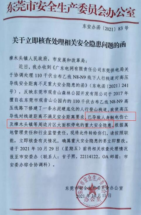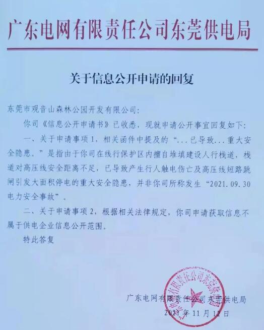 結果,東莞市供電局回函稱:我說的是你觀音山的原因,已致人觸電傷亡的安全隱患,并不是真的有電力安全事故。好吧,就算虛驚一場,那么,以下問題該作何解釋呢?