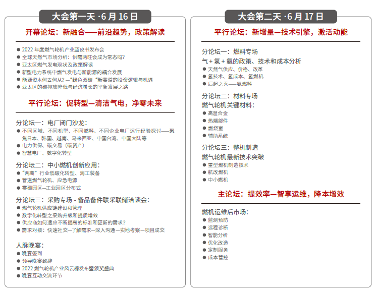 更多內容我們誠邀您共聚2022第九屆亞洲燃氣輪機聚焦千人大會暨年度“產業藍皮書”&“產業風云榜”發布會,本屆品牌升級會采用“會+ 展+ 采+ 榜+ 書”五位一體的創新模式和“1+N+1”的會場設計,匯聚來自全球20多個國家和區域參會代表、超1000人規模、500+參會企業、60+專家代表、50+合作媒體協同聯動。會議論壇、巡回展覽和采購洽談同步進行,年度榜單和產業藍皮書同期發布,大咖對話、深度訪談、快速社交、頭腦風暴、閉門沙龍、衛星會等更多形式精彩紛呈。