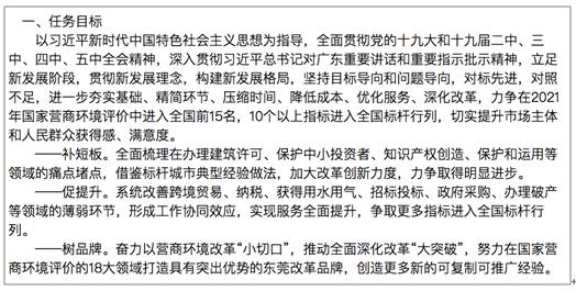 上圖為"東莞市爭創一流營商環境攻堅行動方案(2021)"之任務目標