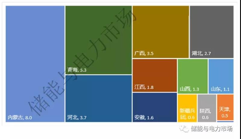 其中內(nèi)蒙古因儲能配置比例高達(dá)新能源裝機(jī)的30%,使其合計(jì)新增儲能達(dá)到8GW。