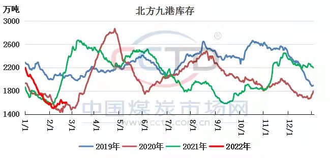 目前,下游電廠采購需求陸續增多,港口市場情緒升溫,市場活躍度提升,2月底前,國內大部地區氣溫偏低,尤其華南沿海地區低溫偏低明顯,日耗表現強勢,而進口煤優勢不再,國內煤成為拉運重點。