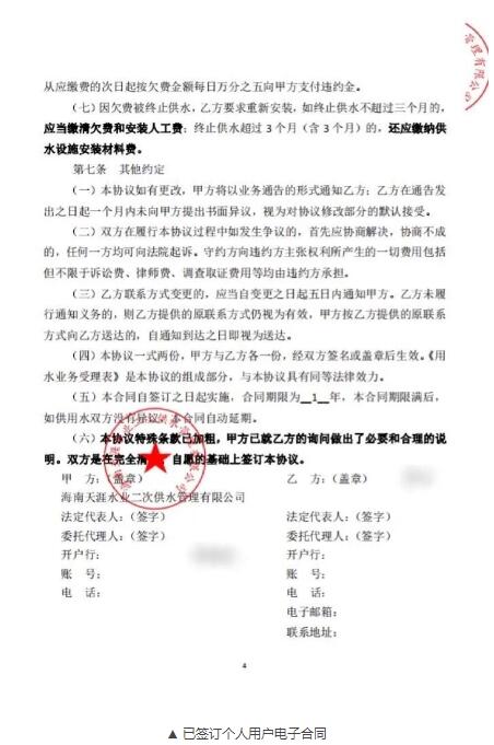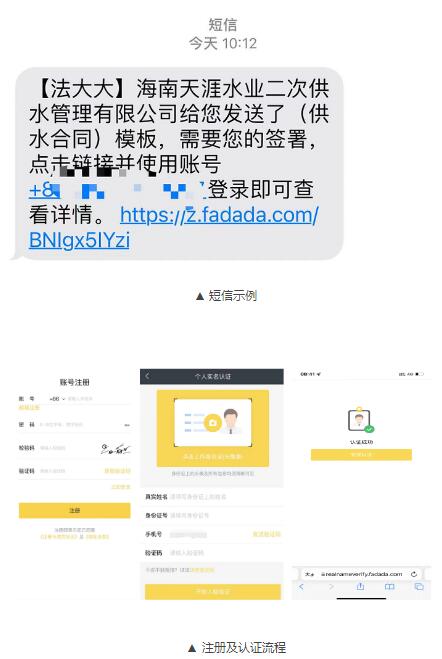三亞環投集團下設東部、西部和二次供水三家供水子公司,供水范圍主要集中在海棠區、崖州區和育才生態區,覆蓋范圍較廣。以往用戶在辦理用水報裝手續時雖然可以在線提交申請,但最后還需去營業廳跑一趟才能簽訂用水合同。為打通用水報裝“最后一公里”,讓群眾“一次都不用跑”,環投集團率先上線電子合同系統,用戶在網上提交用水報裝申請,工作人員核實用戶資料確認用水信息后,會向用戶手機發送短信。用戶只需通過點擊短信內的鏈接,按提示操作即可簽訂具有法律效力的電子合同,電子合同簽訂后即刻可以通水。