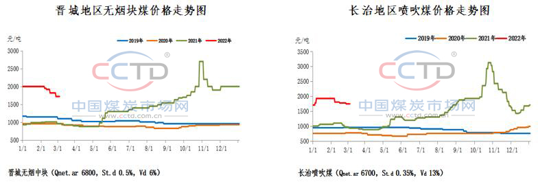 本周無煙煤市場(chǎng)成交繼續(xù)好轉(zhuǎn),無煙末煤、無煙噴吹煤價(jià)格止跌企穩(wěn),偏低價(jià)格有所反彈,無煙塊煤價(jià)格仍延續(xù)偏弱。無煙末煤方面,本周下游用戶需求繼續(xù)回暖,煤礦端銷售逐漸轉(zhuǎn)好。加上近期國際局勢(shì)緊張,俄烏沖突引發(fā)的國際能源緊張預(yù)期推升國際煤炭?jī)r(jià)格大幅上漲,動(dòng)力煤、焦煤等相關(guān)煤種價(jià)格偏強(qiáng),對(duì)無煙末煤價(jià)格形成支撐,本周無煙末煤價(jià)格整體止跌趨穩(wěn)。無煙塊煤方面,隨著天氣回暖,民用市場(chǎng)需求繼續(xù)減弱,化工用戶開工小幅下滑,買漲不買跌心態(tài)下,采購謹(jǐn)慎,維持小單剛需補(bǔ)貨,無煙塊煤需求端支撐偏弱,本周無煙塊煤價(jià)格延續(xù)小幅下行走勢(shì)。無煙噴吹煤方面,本周國內(nèi)噴吹煤市場(chǎng)成交明顯增多,價(jià)格趨強(qiáng)運(yùn)行。供應(yīng)端,目前坑口供應(yīng)趨穩(wěn)定,隨著煤礦出貨好轉(zhuǎn),坑口庫存逐漸下降,對(duì)噴吹煤價(jià)格有支撐。下游需求方面,近期河北、山東部分鋼廠開工陸續(xù)提升,噴吹煤需求量增加,且鋼焦市場(chǎng)行情運(yùn)行良好,下游采購積極性明顯提升,補(bǔ)庫需求加快釋放,噴吹煤需求端支撐趨強(qiáng)。