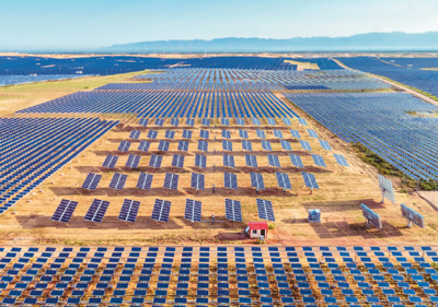 陽春三月,蒙西基地庫布其200萬千瓦光伏治沙項目現(xiàn)場,一片繁忙。這是中國第一批開工建設的大型風電光伏基地項目之一,同時也是目前全國單體規(guī)模最大的光伏治沙基地項目。
