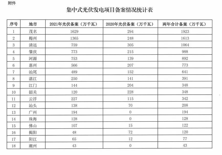 4.鼓勵競爭性配置資源:考慮到茂名、梅州、清遠等3市備案規模均已超過1000萬千瓦,肇慶、河源、惠州、汕尾等4市備案規模均已超過600萬千瓦,遠超當地消納空間,請上述7市進一步加強對光伏備案工作的指導。