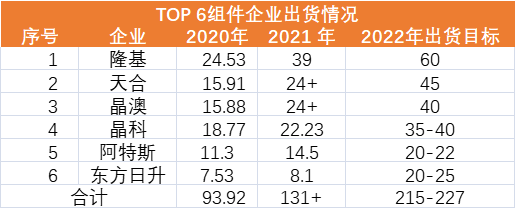 這是一場沒有退路的競爭,不進則退,頭部企業仍需要高市占率來維護其行業地位。根據光伏們調研獲悉,2022年TOP6組件企業的出貨目標已有215GW~227GW。中國光伏行業協會預計,2022年全球裝機需求保守估計195GW,樂觀估計到240GW,這意味著頭部組件企業的出貨目標占比超過90%。