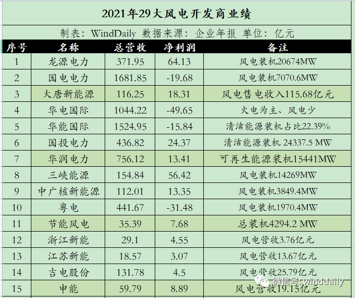 WindDaily獲悉,時至五月諸多風電企業(yè)終于悉數(shù)曬出2021年年報。2021年風電開發(fā)商經(jīng)營業(yè)績?nèi)绾文?且看WindDaily為大家整理的29大風電開發(fā)商的成績單。具體如下: