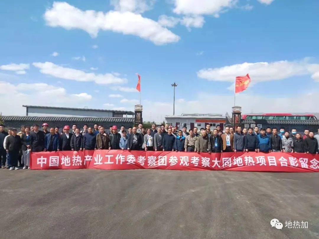 圖為中國地?zé)岙a(chǎn)業(yè)工作委成員2021年4月28日參觀考察天鎮(zhèn)地?zé)犴椖?/p>
