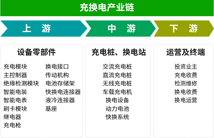 充換電行業正在進入高速發展期。行業領域主要包括換電站解決方案、智能充電解決方案、車載電源、充電樁及配套元器件、配套設施解決方案、充電設施EPC建設及運營解決方案等環節。