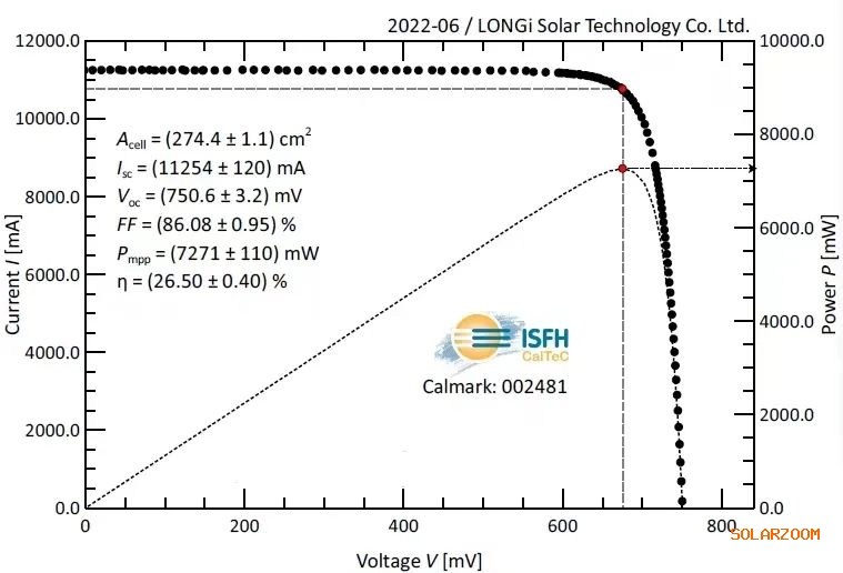 近日,隆基硅異質(zhì)結(jié)光伏電池(HJT)研發(fā)再次取得重大突破,經(jīng)德國哈梅林太陽能研究所(ISFH)測試M6全尺寸電池(274.4c㎡)光電轉(zhuǎn)換效率達26.50%,創(chuàng)造了大尺寸單結(jié)晶硅光伏電池效率新的世界紀錄。