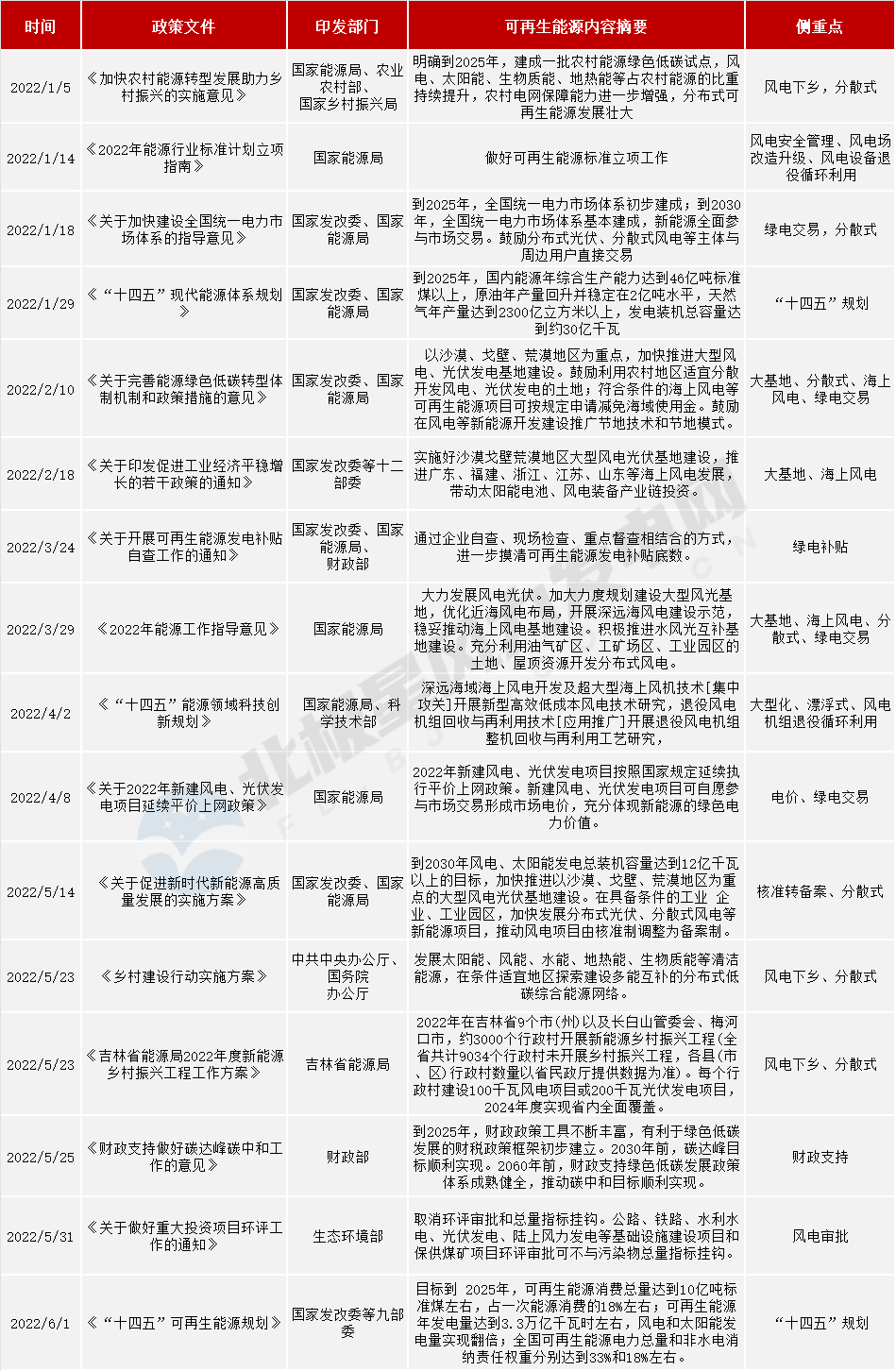 2022年5月23日,《鄉村建設行動實施方案》提出實施鄉村清潔能源建設工程,發展太陽能、風能、水能、地熱能、生物質能等清潔能源,結合鄉村振興戰略,實施風電下鄉“整縣推進”。
