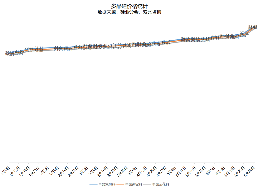 6月29日,中國有色金屬工業協會硅業分會公布了太陽能級多晶硅最新價格。