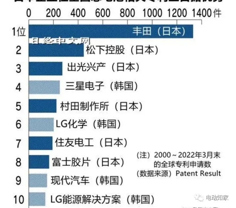 7月7日消息,據(jù)國外媒體報道,日經(jīng)新聞與專利調(diào)查公司Patent Result合作,調(diào)查了向日美歐中等10個國家和地區(qū)以及世界知識產(chǎn)權(quán)組織(WIPO)等2個機構(gòu)提出申請的全固態(tài)電池相關(guān)專利。在全固態(tài)電池專利排名中,日韓企業(yè)瑤瑤領(lǐng)先。全固態(tài)電池由于能提供更好的安全、更大的容量、更快的充電,被公認(rèn)是下一代電池技術(shù)路線的發(fā)展方向,中國的電池企業(yè)要跟上了!