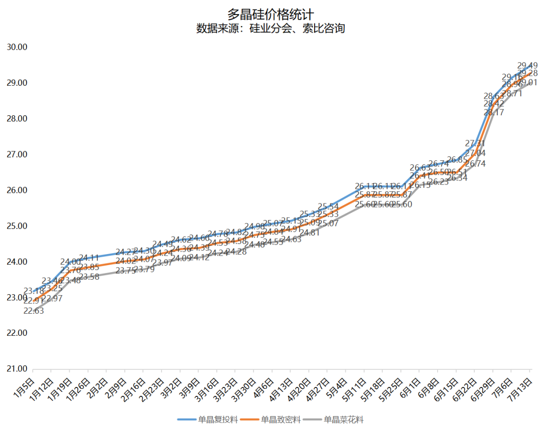 7月13日,中國有色金屬工業協會硅業分會公布了太陽能級多晶硅最新價格。