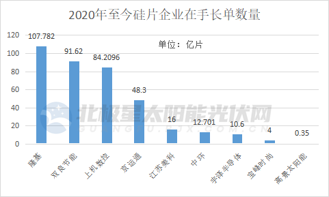 從硅片企業與下游企業簽署的長單情況來看,自2020年以來,老將隆基、中環在手硅片長單總量約107.782億片、12.7億片;硅片“新秀”雙良節能、上機數控、京運通緊隨其后,在手總量分別為91.62、84.2、48.3億片。