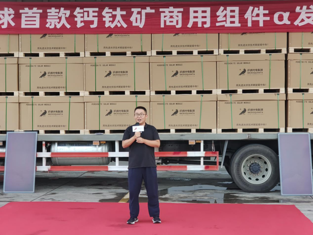 7月28日下午,全球鈣鈦礦光伏產業化領軍企業纖納光電在浙江衢州舉行了首批α組件的發貨儀式,此次發貨數量為5000片,用于省內工商業分布式鈣鈦礦電站。纖納光電聯合創始人兼CEO姚冀眾、聯合創始人兼CTO顏步一與基地全體員工共同見證了這一在鈣鈦礦發展史中具有開拓性意義的歷史時刻。