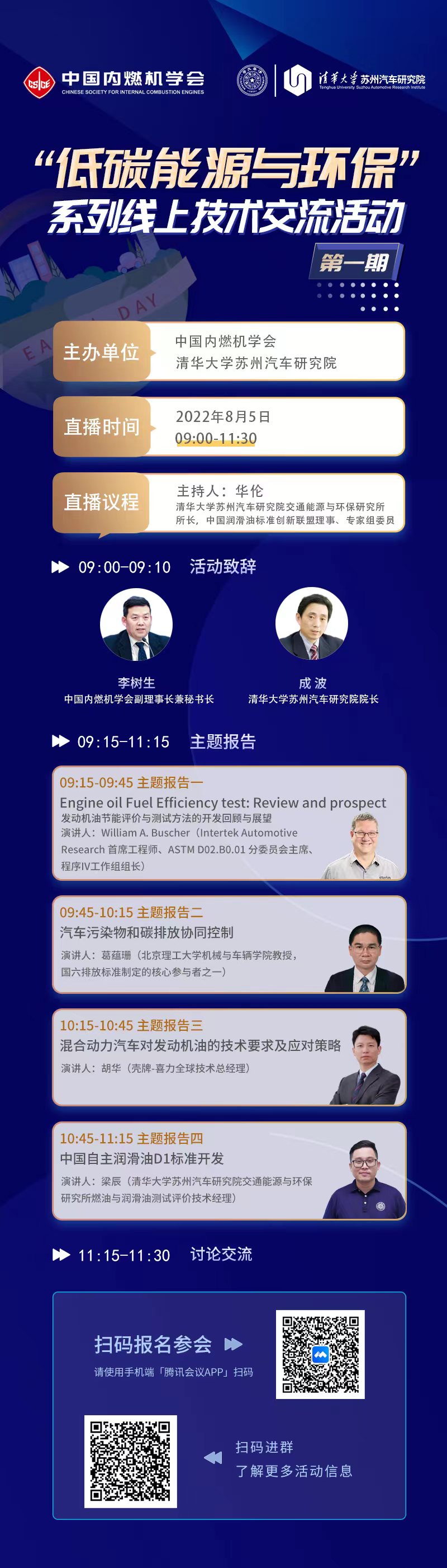 當前,以‘碳達峰、碳中和’為目標的低碳綠色發展已經進入了快車道,在探索減排提效、新型能源的道路上,新技術、新產品的研究與應用突破不斷。為更好得推動著內燃機行業向低碳零碳化轉型,清華大學蘇州汽車研究院聯合中國內燃機學會主辦的“低碳能源與環保”系列線上技術交流活動正式啟動。8月5日,09:00-11:30,我們期待與您線上相見!