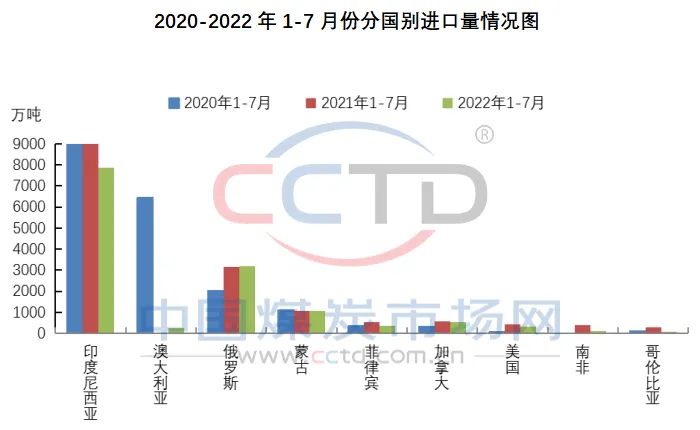 今年前7個月,我國累計從俄羅斯和蒙古國進口煤炭數(shù)量小幅增長,而從其他國家進口煤炭累計數(shù)量同比均出現(xiàn)不同程度的下降,尤其是從南非和哥倫比亞除年初有少量進口外,已連續(xù)數(shù)月沒有進口,同比降幅較為明顯。此外,澳洲煤進口量也是去年滯留在港在今年得以通關(guān)的量。