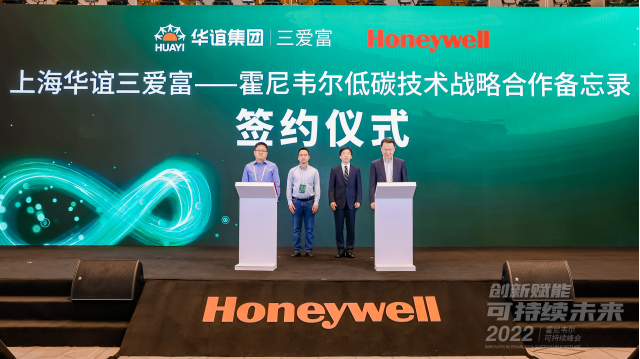 峰會上,霍尼韋爾與圣奧化學科技有限公司(以下簡稱“圣奧化學”)、上海華誼三愛富新材料有限公司(以下簡稱“三愛富”)分別簽署戰略合作備忘錄,以創新技術助力合作伙伴實現可持續發展目標: