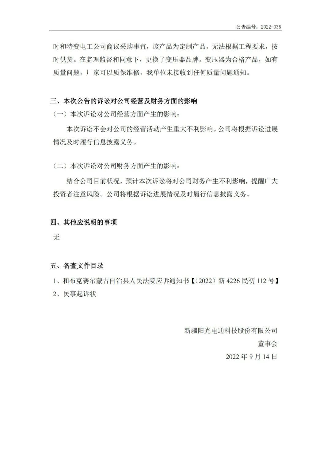 9月14日,新疆陽光電通科技股份有限公司(證券簡稱“ST陽光通”)發布訴訟公告,該訴訟案件原告為和布克賽爾蒙古自治縣鄉村振興局,被告為ST陽光通,第三人或其他利害相關人新疆鑫海電力建設有限公司。