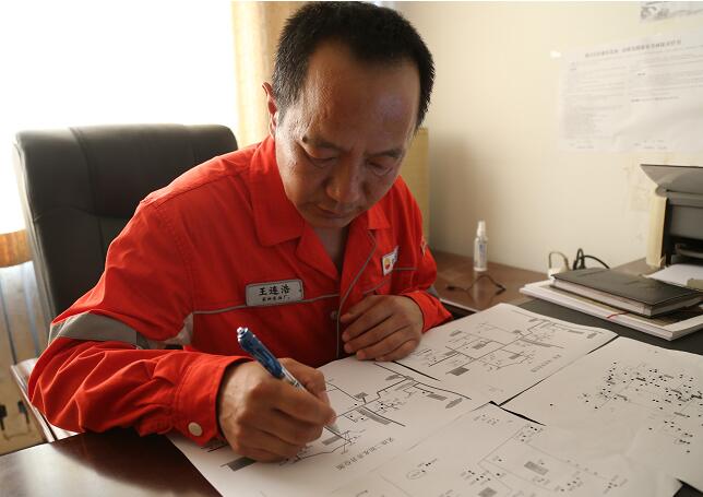 "王站,早點(diǎn)休息吧,這都幾點(diǎn)了,你還在加班。""明天古十計(jì)要改造,我再看看施工方案,確定一下工作量。"9月18日23時(shí),華北油田采油四廠永清作業(yè)區(qū)值夜班的大班班長(zhǎng)張林林看到采油一站站長(zhǎng)王連浩伏在桌子上拿著放大鏡看圖紙。