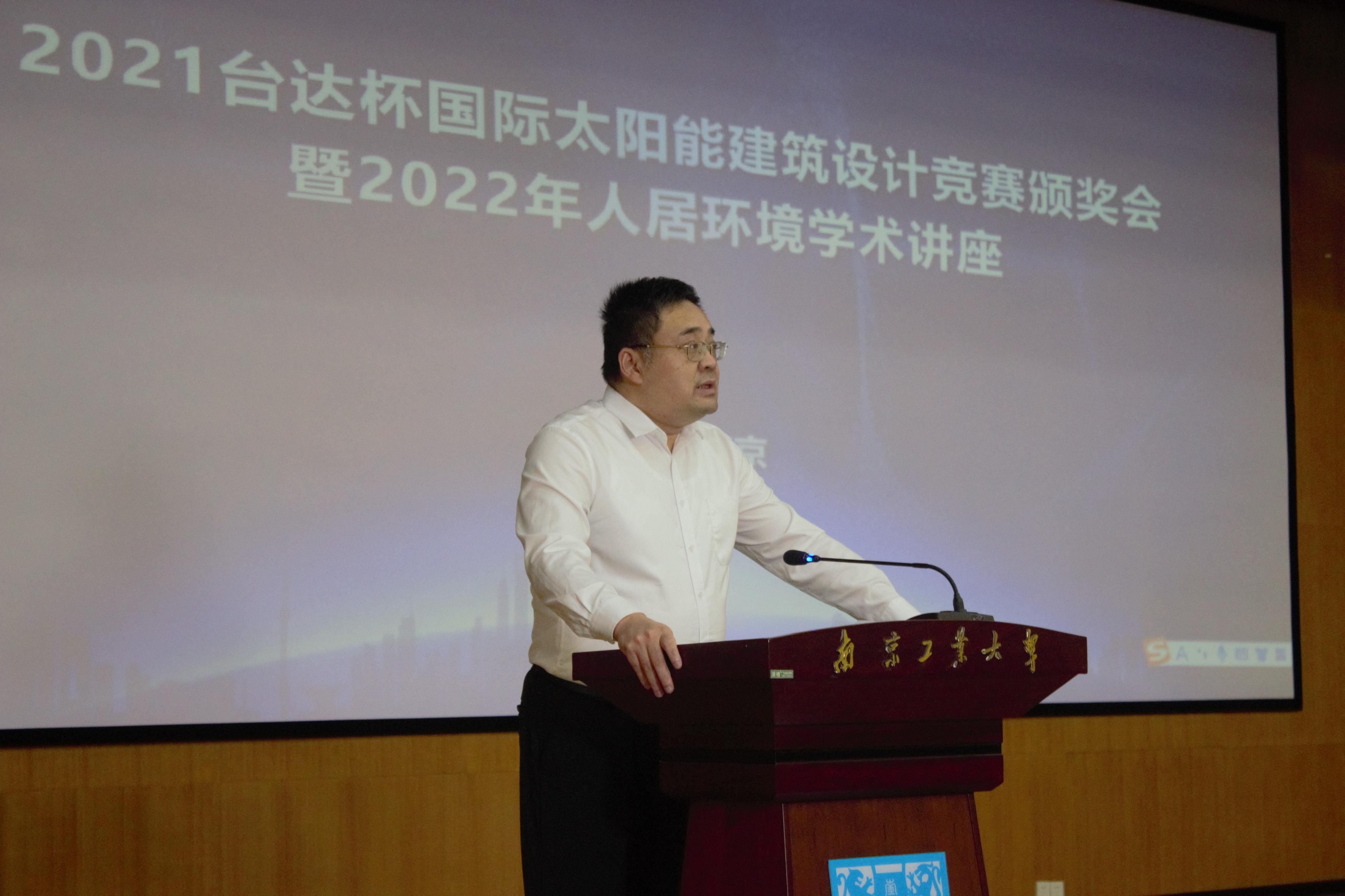 頒獎(jiǎng)會(huì)伊始,南京工業(yè)大學(xué)副校長(zhǎng)陸偉東教授致歡迎辭時(shí)表示,南京工業(yè)大學(xué)建筑學(xué)院辦學(xué)歷史悠久、成果豐碩,為國(guó)家建設(shè)提供了大批高水平人才。在實(shí)現(xiàn)雙碳目標(biāo)的宏圖中,如何在建筑學(xué)科的研究、實(shí)踐和人才培養(yǎng)中,踐行建筑業(yè)綠色發(fā)展、低碳節(jié)能的責(zé)任擔(dān)當(dāng)和使命,是建筑學(xué)科面臨的重大挑戰(zhàn)及機(jī)遇。臺(tái)達(dá)杯國(guó)際太陽(yáng)能建筑設(shè)計(jì)競(jìng)賽作為優(yōu)秀的設(shè)計(jì)和交流平臺(tái),必將對(duì)建筑學(xué)科的發(fā)展起到積極的推動(dòng)作用,希望南京工業(yè)大學(xué)能與競(jìng)賽一起,為實(shí)現(xiàn)“雙碳”宏偉目標(biāo)貢獻(xiàn)力量。