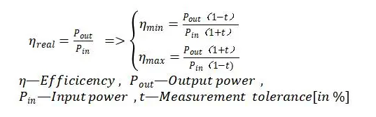 根據上述表達式,測量公差顯著影響以這種方式確定的效率。盡管 0.5% 的綜合測量誤差已經是相對不錯的水平(實際上確實如此),但它對計算效率產生了巨大影響。下面我們展示一個示例加以說明。