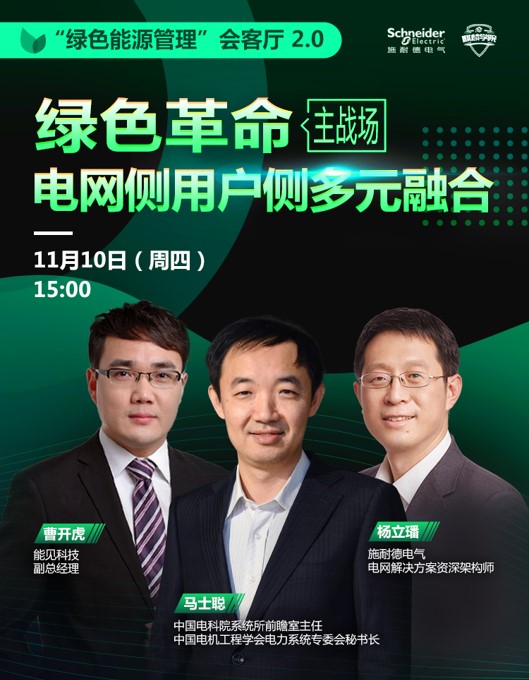 對此,施耐德電氣與能源領(lǐng)域?qū)I(yè)知識服務(wù)平臺能見·麒麟學(xué)院聯(lián)手推出2022年 “綠色能源管理會客廳”第二季,以實踐為支點,深度探討在能源轉(zhuǎn)型進程中,企業(yè)個體與能源產(chǎn)業(yè)面臨的痛難點。相較第一季,季系列探討,更注重對一線企業(yè)需求痛點的洞察與把握,并在此基礎(chǔ)上聚焦“能源科技創(chuàng)新”與“源網(wǎng)荷儲”各個環(huán)節(jié),助力各類型企業(yè)在端到端的能源管理中實現(xiàn)安全可靠和高效管理,為“雙碳”目標(biāo)的最終達成提供助力。