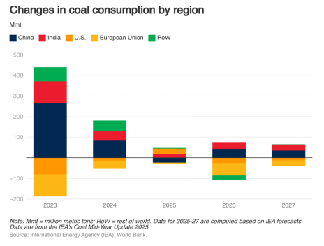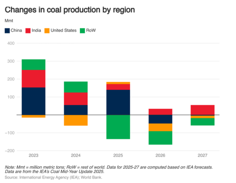 據世界銀行(World Bank)近期發布的2025年10月《商品市場展望》(Commodity Markets Outlook)報告,這一旗艦報告認為“全球煤炭市場面臨需求疲軟、供應韌性十足、且電力行業正處于轉型期的十字路口”(Global Coal Markets at a Crossroads With Soft Demand, Resilient Supply, and a Power Sector in Transition)。
