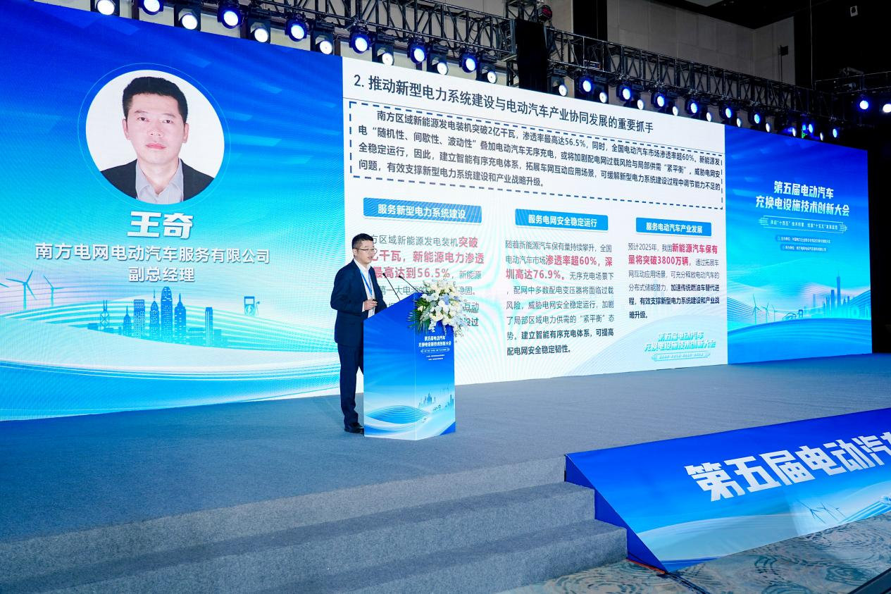 南網電動公司副總經理王奇圍繞車網互動技術及產業趨勢進行綜述,分析了試點城市的應用情況,展現充換電設施與電網協同潛力,并指出規模化推廣中的制約因素。此外,中電聯標準化管理中心對充電速度分級、設計能效等關鍵標準進行解讀,促進行業規范發展。