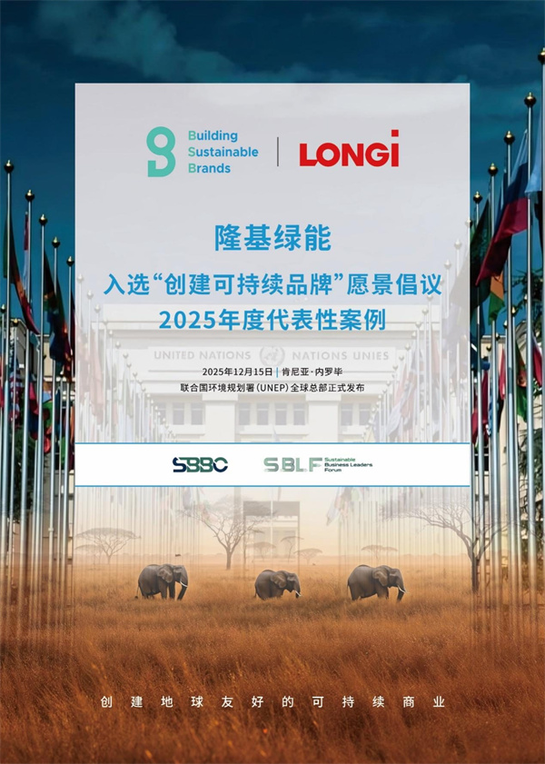作為首批簽署“創建可持續品牌”愿景倡議的企業,隆基不僅積極分享產業可持續發展實踐,更于今年10月參與發起“2025企業可持續品牌西安倡議”,推動可持續理念在中國扎根生長,并將愿景轉化為清晰、可落地的行動路徑。未來,隆基將繼續以行動夯實理念,以科技驅動綠色增長,攜手全球伙伴,共同開創更可持續的零碳未來。