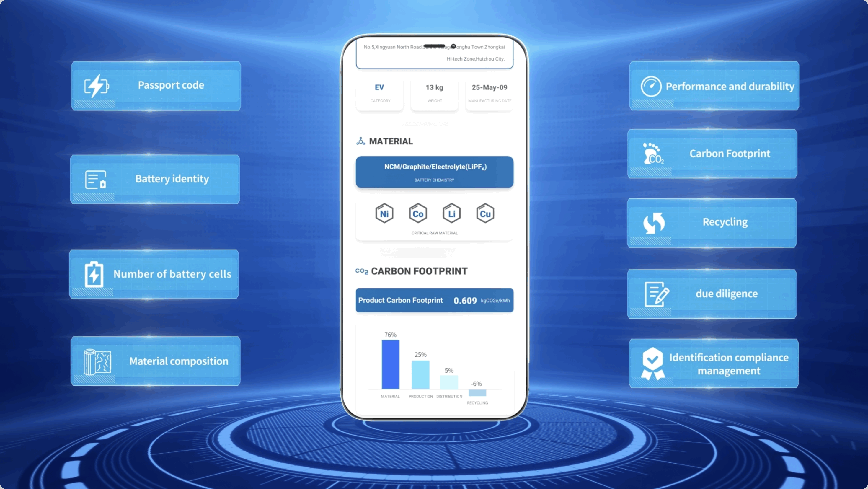 億緯鋰能以數字技術驅動全球電池產業綠色循環發展,實現2022-2025年生產端單位碳排下降60%+、單位產品能耗降低55%+的卓越成效。通過部署AI能效最優曲線模型,對空調、空壓等核心用能系統進行實時診斷與動態調優,帶動系統能耗降低5%-10%。在產品全生命周期減碳層面,創新應用“電池護照”,為每顆電池賦予唯一數字身份ID,覆蓋產業鏈超20萬個數據節點,為電池的梯次利用與精準回收提供可靠數據基礎。億緯鋰能推進全價值鏈條協同降碳,通過可再生能源利用、再生料應用、節能技術升級等舉措持續發力,推動產品全生命周期碳足跡降低 15%。