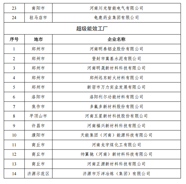 關于公布2025年度河南省零碳工廠 超級能效工廠名單的通知
