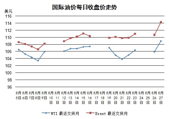 當日國際油價大漲主要是因為美英表明將有可能對敘利亞動武。有報道稱,由于懷疑敘利亞使用了化學武器,美國8月29日以后可能對阿薩德政權發動導彈攻擊。地緣政治風險驟增。