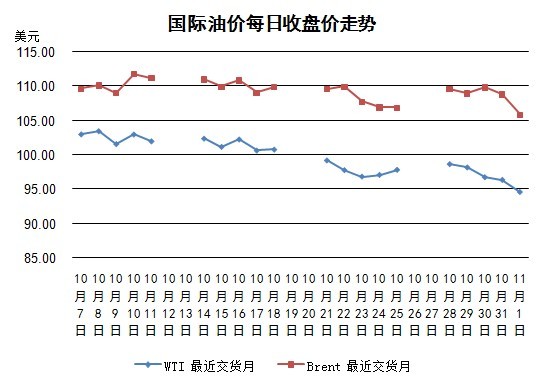 歐洲央行7日將舉行貨幣政策例會(huì)。由于近期公布的歐元區(qū)通脹數(shù)據(jù)顯示出通縮風(fēng)險(xiǎn)正在加大,歐洲央行進(jìn)一步降息以促進(jìn)經(jīng)濟(jì)復(fù)蘇的壓力增加。美國(guó)供應(yīng)管理協(xié)會(huì)(ISM)11月1日公布10月制造業(yè)調(diào)查報(bào)告結(jié)果,美國(guó)10月ISM制造業(yè)指數(shù)為56.4,預(yù)期55.0,9月該指數(shù)升至56.2,當(dāng)時(shí)創(chuàng)下2011年4月以來(lái)新高。這些因素導(dǎo)致美元走強(qiáng),歐元走弱,而這會(huì)打壓以美元定價(jià)的油價(jià)。美國(guó)原油庫(kù)存增加同樣利空油價(jià)。