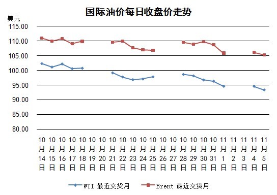 11月5日國(guó)際油價(jià)在4日短暫止跌后繼續(xù)下探,紐約WTI價(jià)格更是創(chuàng)下了6月份以來的新低。11月6日美國(guó)能源信息署將公布石油庫(kù)存周報(bào)。路透社以10名分析師為對(duì)象的調(diào)查預(yù)測(cè),截至11月1日美國(guó)原油庫(kù)存比前一周增加160萬桶。如果該預(yù)測(cè)正確,那么原油庫(kù)存將連續(xù)7周增加,并預(yù)示需求放緩的長(zhǎng)期化。美國(guó)俄克拉荷馬州庫(kù)欣中心截至10月25日庫(kù)存也大幅增加200萬桶,是2012年12月以來的最大增量。