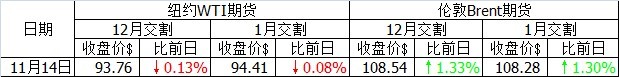 美國能源信息署當日公布的截至11月8日的原油庫存比前一周增加260萬桶,大幅超過路透社之前增加100萬桶的預計。受這一利空影響,雖然有耶倫表態的積極支撐,但紐約WTI油價最終收跌。