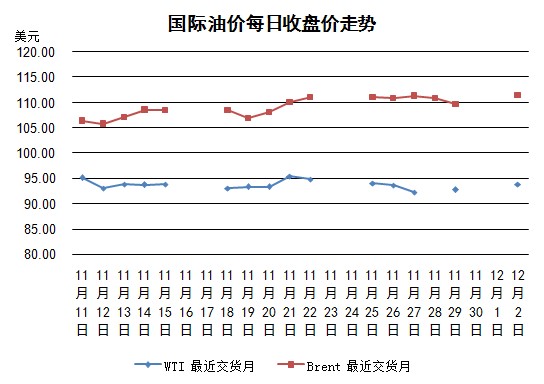 當日中國國家統計局和中國物流與采購聯合會公布的11月PMI為51.4,同前一月維持在同一水平,這意味著中國制造業依然景氣。另外,美國供給管理協會(ISM)當日公布的11月美國制造業景氣指數為57.3,超出市場預計的55.0,為2011年4月以來的最高值。受中美經濟指標向好的影響,布倫特和WTI原油期貨價格紛紛上漲。
