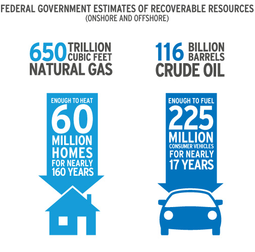 保守估計,在美國各地原油與天然氣儲備大約是1500億桶,相當于沙特阿拉伯。美國聯邦持有大約1160億桶原油和650萬億立方英尺天然氣。這些原油可以供應大約22500萬私人車輛使用17年,6000萬個家庭使用大約160年。