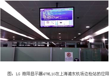 本次上海浦東機場邊檢站項目選用的是LG47英寸窄邊框LED商用顯示器47WL10機型,用于發布航班提示和服務信息,其下邊框為19.9mm,上邊框、左邊框和右邊框均為15.3mm,適應于機場多個應用場景,有效節省了安裝空間。