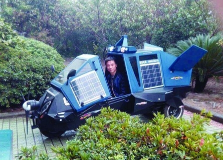 這輛車,陸新田融入了殲擊機(jī)和直升機(jī)的設(shè)計(jì)理念。陸新田是英語老師出身,后來自己開了一個機(jī)械小加工廠,從來沒有做過汽車方面的研究,這輛車子他研究了300多款國外的綠色環(huán)保車,幾乎天天晚上都要加班,有時(shí)候,為了一個小細(xì)節(jié),自己整晚都在研究。