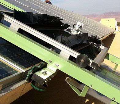 Ecoppia是一家于去年成立于以色列的公司,它已經(jīng)在以色列內(nèi)蓋夫沙漠的科杜拉太陽能電池陣列(Ketura Sun solar array)投入了100架面板清潔機(jī)器人。使用超細(xì)纖維減震器產(chǎn)生氣流,從而把灰塵面從面板表面清除掉,系統(tǒng)機(jī)器人每晚在電池板上進(jìn)行約一個(gè)半小時(shí)垂直或水平方向運(yùn)動(dòng),它們通過自己的太陽能電池板獲得動(dòng)力(你也許會(huì)問,機(jī)器人的太陽能電池板誰來清洗呢?機(jī)器人自己會(huì)完成這項(xiàng)工作)。該系統(tǒng)可遠(yuǎn)程管理,甚至通過智能手機(jī)來完成。