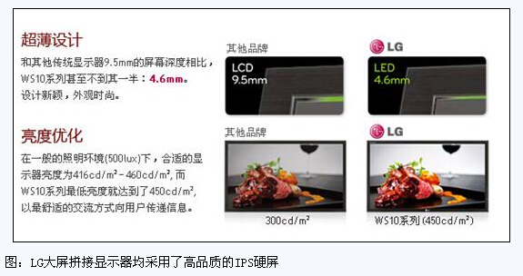 LG此次為北京地鐵7號線量身打造的顯示解決方案中,采用42、55英寸的LGWS10系列商用顯示器42WS10和55WS10,屏幕深度僅為4.6mm,超薄機身有效節省地鐵的安裝空間。該系列采用LG獨有的IPS硬屏技術,178°的超廣可視角讓乘客從幾乎能從任意角度及時獲知地鐵班次等信息。IPS硬屏還擁有超強色彩還原能力的畫面顯示和清晰流暢、無閃爍和無拖尾動態圖像切換的特點。雖然北京地鐵每天都承載巨大的人流量,但是LGWS10系列商用顯示器提供及時準確的信息顯示將為乘客出行帶來極大便利,并有效提高出行效率。此外,高度優化的顯示技術支持WS10系列最低亮度僅為450cd/㎡,確保用戶獲得信息的視覺感受是最舒適的。
